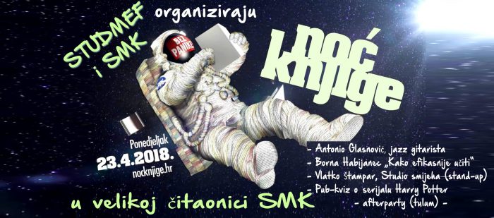 NOVOSTI [SMK i STUDMEF] Noć knjige u Središnjoj medicinskoj knjižnici Medicinskog... U ponedjeljak, 23.04.2018. STUDMEF u suradnji sa Središnjom medicinskom knjižnicom organizira manifestaciju „Noć knjige“ koja će se održati u velikoj čitaonici SMK s... Objavljeno 23.04.2018.